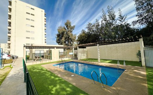 Dispone de loggia y conexión para lavadora. El condominio ofrece espacios comunes como piscina, quincho y áreas verdes, además de un entorno seguro con accesos controlados, conserjería 24 horas, portón eléctrico, cámaras de seguridad y cerco eléctrico. No cuenta con estacionamiento ni bodega.